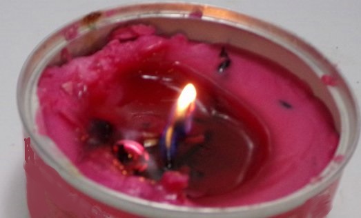 Вспомнил, что у меня есть немало сплетённых медных полосок, используемых при пайке в качестве впитывающего припой материала. Срезал кусочек такой оплётки (с сильно развитой капиллярной поверхностью!), глубоко воткнул палочкой в стеарин свечи и поджёг этот «фитиль», подержав несколько секунд пламя рядом со стеарином, чтобы расплавился и поднялся по медной оплётке.
