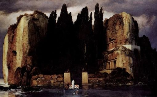 На картине изображен скалистый остров, к которому медленно плывет лодка с гробом и фигурой в белом. Этот мотив отсылает к древнегреческой мифологии – реке Стиксу и Харону, перевозчику душ. Беклин никогда не пояснял символику работы: “Я хотел, чтобы от этой тишины человек испугался своих шагов”, – отмечал художник.